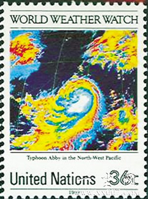 1989年4月21日联合国总部邮局发行的世界天气监视邮票之一