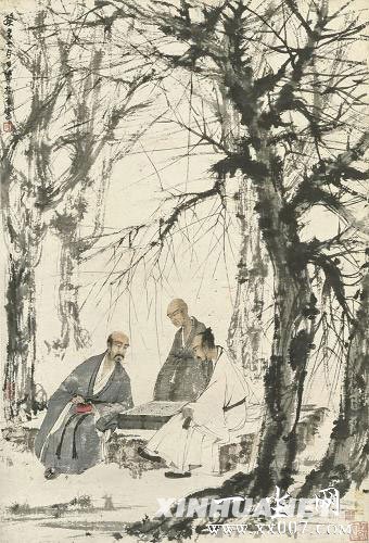 4月6日拍摄的傅抱石的作品《对奕图》。新华社记者黄晓勇摄