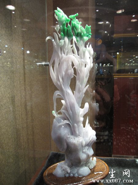 此外,还展出了翡翠人物、山水等摆件以及首饰。展品总价值超过6千万元。展览将持续到5月31日。文/小雨