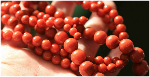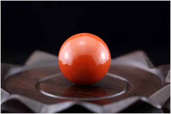 能称之为一级品的范畴的,略比极品差一些,上面有少许纹理,或匀色玫瑰红,注意是匀色玫瑰红,一定是很均匀的混入,是晕色的,而非火焰或明显杂色,匀色混玫瑰红的往往比纯色柿子红的看起来红艳,很受市场追捧。因为极品珠子很少,所以主要收藏热点在一级品上。
