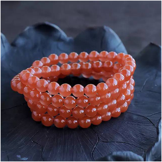 能称为极品的珠子,须达到几点,无矿无裂无水晶无杂线,自然光源下颜色一致无其他混色或纹理。可说是万里挑一,因南红料子属于玛瑙,会有天然的玛瑙纹,这是自然规律,无纹的可算逆天了,因为量少,稀有度高,很多人说纯色现在是个传说。因为做珠子的基本是通货里的垃圾料了,能出个好东西实属不易。