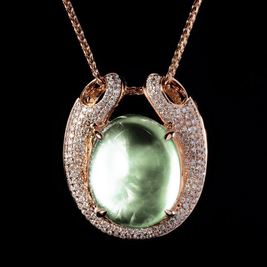葡萄石的质地细腻通透、水润欲滴,充满灵性和内涵,因此受到广泛大众的喜爱。市场上的葡萄石以黄绿色为佳品,呈现金黄色的澳大利亚葡萄石更是不可多得的宝石。