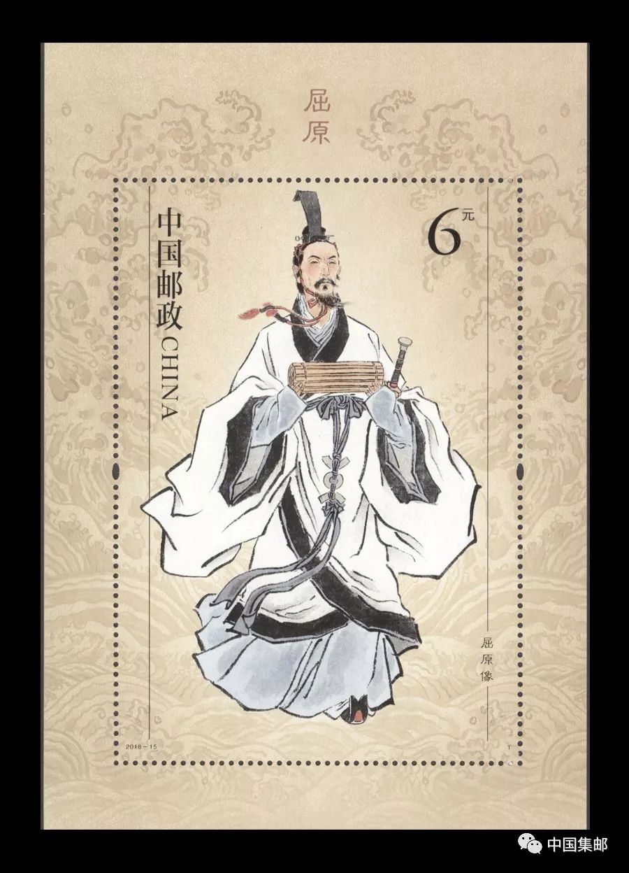 中国邮政定于2018年6月18日发行《屈原》特种邮票1套2枚,小型张1枚。详情如下: