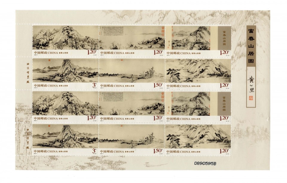 此次发行的《富春山居图》特种邮票以《富春山居图》整幅画卷为蓝本,采取六连张的形式,全套面值9.30元,单枚邮票规格为60×30毫米,设计新颖,极具收藏价值。中国 邮政定于2010年3月20日发行《富春山居图》特种邮票1套6枚。
