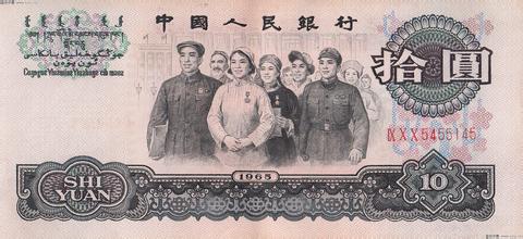1965年十元纸币是中国人民银行发行的第三套人民币当中的一个币种,它的图案以民族大团结为主题,象征着我国和谐的民族关系和对未来发展的展望,这张纸币作为第第三套人民币当中的一种,目前已经退出了流通领域,在市场上几乎已经看不到它的身影,虽然收藏市场上可以找到这张纸币的踪影,不过总体来说还是很难见到,所以这些年来它的价值也跟着形势处于上升时期。