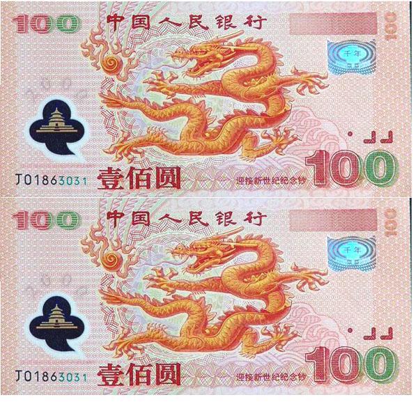龙钞是国家到目前发行的第二张纪念钞,前有建国50周年的建国钞,后又奥运钞,目前建国钞单张价格400多元,建国钞三连体25000元上下,奥运钞没有连体,2000年千禧龙钞双连体发行量才10万份,物依稀为贵,三千年一次发行机会,这么少的量,从心里到财富,都想要的人太多,未来价值10万元一张都不为过。三年前才2000多元,三年10多倍,抵御通胀,投资理财的好项目。