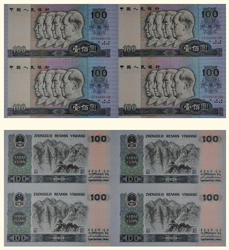 人民币是中华人民共和国的法定货币,随着我国第五套人民币的问世,第四套人民币将逐渐退出流通领域,从而成为收藏的珍品。 80版100元四连体 发行于2002年,发行量20万张,面值400元,发行之初市价约430元,属于早期发行连体钞的品种,外包装吉祥且大气,礼品消耗较大。发行时压货人较少,导致比较分散,现在很难找到100套连号的。