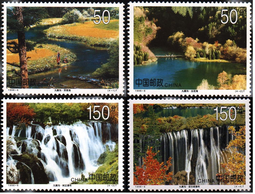 “九寨归来不看水”,是对九寨沟景色真实的诠释。泉、瀑、河、滩108个海子,构成一个个五彩斑斓的瑶池玉盆。他不仅是令人向往的山水风景地,也是研究自然生态、生物演化和古地理学、古气象学的好地方。1978年,即被列为国家自然保护区;1982年,成为国家首批重点风景名胜区;1990年,被评为中国旅游胜地40佳,六自然风景之首;1992年,被联合国教科文组织列入《世界自然遗产名录》成为全世界人类共同拥有的宝贵财富。1998年3月26日,国家邮政部门发行《九寨沟》邮票一套四枚,其中第一枚“芳草海”、第二枚“五花海”均为九寨沟有名的湖泊,特别是小型张展示了九寨沟“长海”的美丽景观。