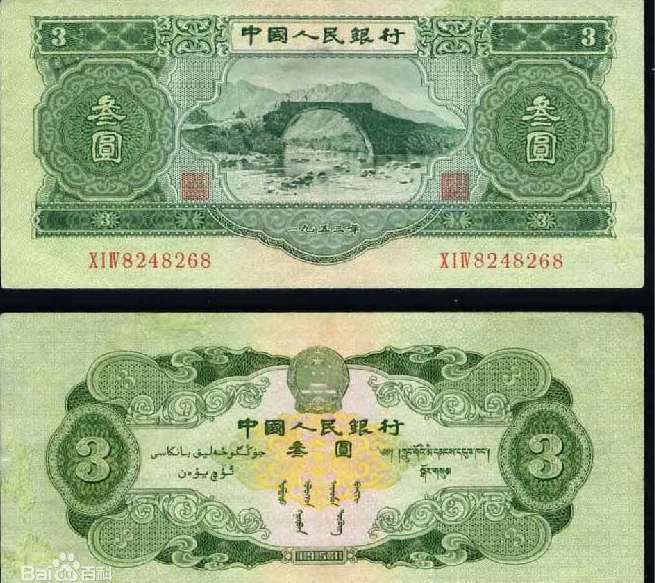 第二套人民币1953年3元纸币反映出的是一段历史,在它的身上我们既能看到当时中苏关系的密切--我国对前苏联的信任,前苏联对我国的援助,也能反映出两国反目成仇的历史,它的收回后,马上由第三套人民币所取代,这说明我国逐渐走上了独立自主的道路。