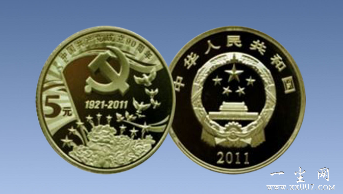 2011年6月16日,由中国人民银行发行的建党90周年纪念币(面值5元)以我国共产党建党90周年为蓝图,以中国共产党党徽、党旗为背景,勾画出中国美好前景。由于题材重大,刚刚上市便受到收藏投资客的哄抢,现在市场前景大好,涨幅都在5倍以上。许多钱币收藏专家纷纷表示,这个纪念币象征中国共产党建党90周年,题材意义好,纪念性独特,未来市场前景必好。