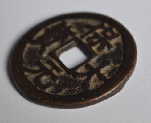 显微镜下看系青铜质地据史料载:自楚王马殷开天策府后,其铸钱背文多有“天、策、天策、天府”等字。由此看来,保大元宝背天钱币是既承袭了楚国铸钱的旧制,又记载了李璟时代的到来,无疑,此钱承载着一定的纪念意义。