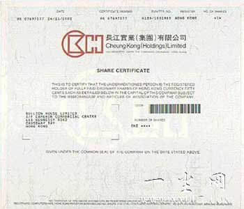 经证实,长江实业这股实物“股票”,并没有直接以股票的形式出现,而是由香港金