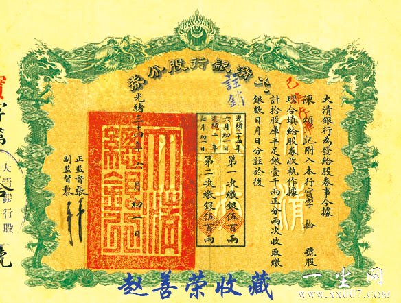 1.中国第一家国家银行、中央银行-大清银行发行的股票