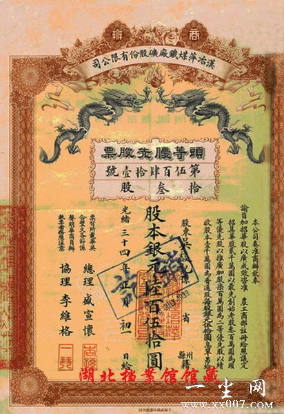 4.中国最早的钢铁联合企业-汉冶萍煤铁厂矿公司股票