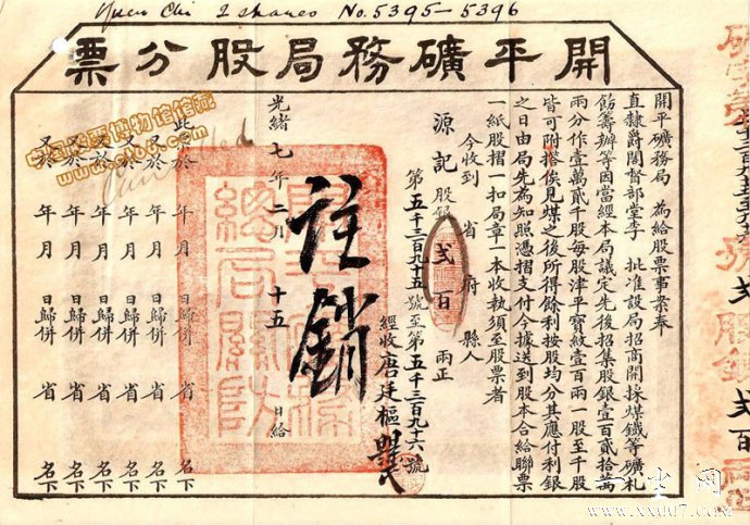 2.中国存世最早的股票-开平矿务局股票