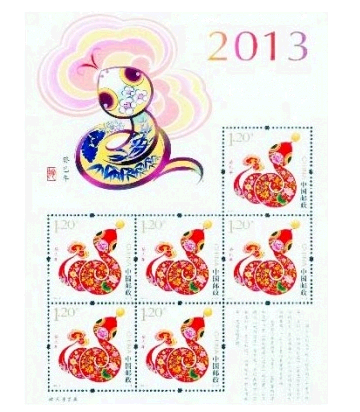 【藏品名称】2013-1 癸巳年·蛇(T)第三轮生肖邮票蛇小版票