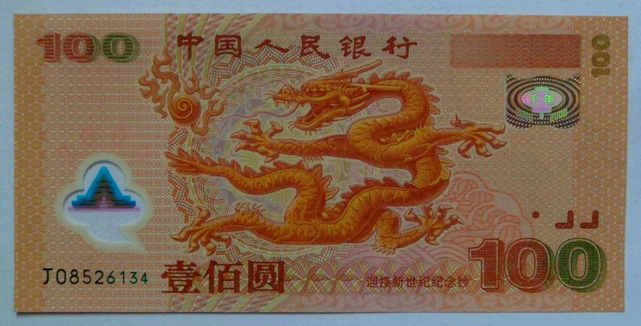 熟悉2000年纪念龙钞的人都知道,因为它的发行时间,所以被人们广泛称为“2000年千禧年纪念龙钞。而作为迎接新世纪的精品纪念钞,它们受关注的程度是非常火爆的。其票面整体以橘黄色为主色调,象征着红红火火,正面主体图景是一只气势威严的黄龙,上方印有“中国人民银行”的字样,面值为100元。