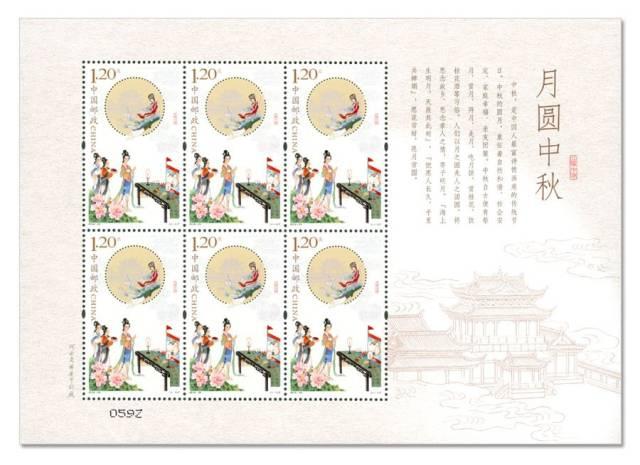 中国邮政将于8月29日发行的《月圆中秋》邮票一套一枚。以月之圆兆人之团圆,将思念之情融入方寸之间。