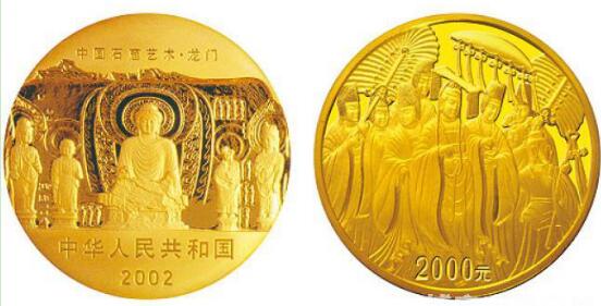 说起龙门石窟相信很多藏友都听说过,它位于我国河南省洛阳市,是四大石窟之一,早已被列为世界文化遗产当中,享誉海内外。龙门石窟的雕塑展现的都是我国古代的佛教文化,具有相当深刻的历史意义。为了宣传这龙门石窟的文化,我国在02年的时候发行了一套龙门石窟金币,其中就包括这枚5盎司金币。