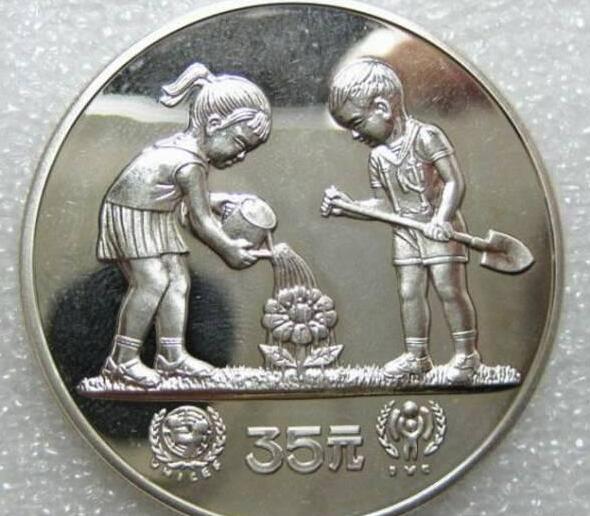 1979年发行 纪念1979年国际儿童节的纪念币 银币 面值35元