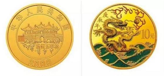 ▲2000年发行的“庚辰龙年”短辰错币