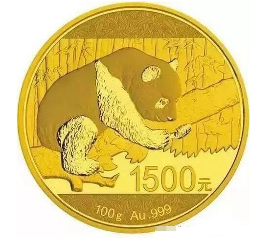 ▲2016年发行100克的熊猫金币