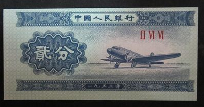 1953年二分纸币顾名思义,就是在1953年3月1日由中国人民银行发行的一款纸币,这款纸币在2007年才被正式宣布退出流通市场,之后便逐渐被藏友们关注。整张纸币的色调以蓝色为主,在纸币的正面右侧是一架飞机图,机身向左,纸币左侧则是繁体字“贰分”的字样,在纸币的背面正中是中华人民共和国国徽,两侧则是富有民族色彩的花符,同时还有汉、维、藏、蒙等文字,体现了我国的多民族共团结。