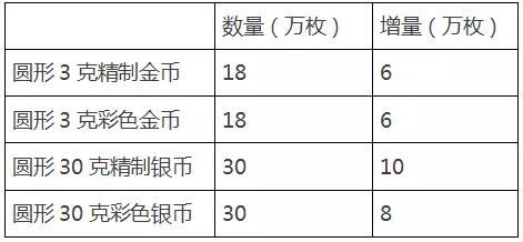 注:增量是与猴年金银币相比
