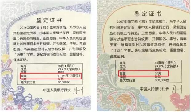 去年的猴年金银币是分两批供货,第一批数量较少,时间较早,市场上猴币供不应求,开盘价过高,而后期大量货源的出现,导致了价格价格的大幅度下滑。而今年的鸡币则在一开始就放出了大量的货源,3克金和30克银的套币12.6万套,比去年的同规格金银套币总数量还要多。