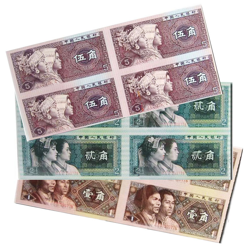连体钞的收藏中1、2、5角币四连体是不容错过的,这是第四套人民币的币种,收藏市场上对于第四套人民币的了解程度也比较多,这套人民币在国际上都收到了很多好评,票面设计精致采用中国名山大川和民族人物形象的结合,这也是中国人民币印制历史上一次飞跃的进步。