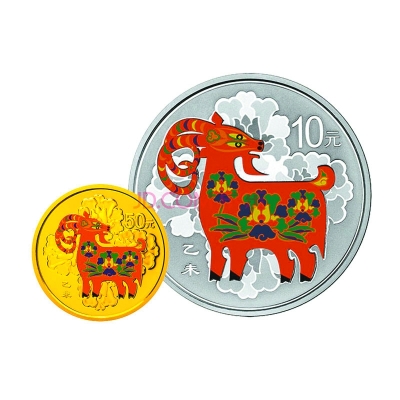 为迎接农历乙未羊年,中国人民银行于2014年10月10日发行2015中国乙未(羊)年金银纪念币一套。在全套16枚的金银纪念币中,有四个规格是彩色币,分别是1/10盎司圆形金币、5盎司圆形金币、1盎司圆形银币和5盎司圆形银币。1/10盎司圆形金币、1盎司圆形银币、1/3盎司扇形金币、1盎司扇形银币、1/2盎司梅花形金币、1盎司梅花形银币、5盎司长方形金币、5盎司长方形银币、1公斤梅花形金币、1公斤圆形银币、2公斤圆形金币和10公斤圆形金币,为本色币。设计师通过不同设计和工艺呈现,羊年彩色纪念币和羊年本色纪念币,呈现出不同的审美内涵。
