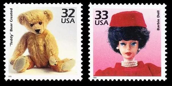 近代的美国是一个全球性文化输出国,美国的玩具也被许多国家的人民所熟知。“泰迪熊”、“芭比娃娃”这些家喻户晓的玩具品牌,早已在世界各国的邮票中遍地开花。