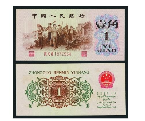 1966年1月10日,重新设计的1962年版一角纸币,其背面图由原来的枣红色图案换成墨绿色菊花图案。这个“背绿一角券”共有水印和无水印两种版别。因其背面颜色与同时流通的二角纸币相近,易混淆,发行一年后,人民银行决定收回,并于1967年12月15日又发行背面颜色为酱紫、橘黄色的一角券。发行时间短,决定了其存市量少,这为背绿水印一角钱涨价提供了空间。