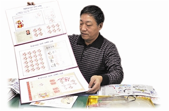 “1980年,中国人民邮政发行了《庚申年》猴票,开创了中国生肖票的先河,”肖义同谈起自己收藏的生肖邮票显得非常兴奋,“从第一套猴票到今年的虎票,其间每一年的生肖票我都有,”他拿着邮票对比分析说:“今年的虎票增加了卡通虎,而且不仅仅是单虎,样式更加丰富,发行量也更大了。我今年的头等大事就是集生肖虎票,收集生肖票已经成为我历年来迎新春的一种习惯。”现在的特种邮票虽做工精美,但独具一格的肖义同更钟情于自己点滴积累的十二生肖信销票,他认为只有被使用过的,盖有邮戳的邮票才更能体现出“集”和“寄”的乐趣。