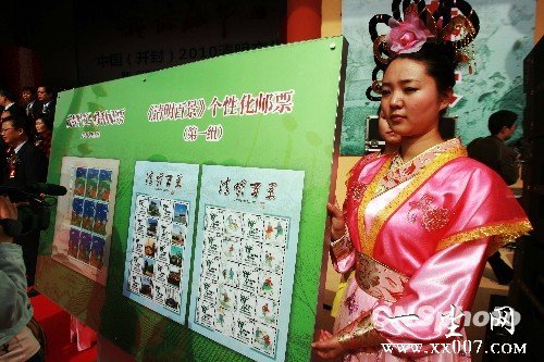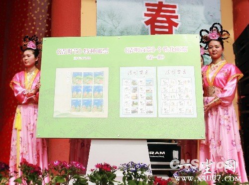 图文:“大宋美女”河南展示清明节特种邮票