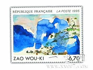 ▲法国邮政部门发行的赵无极蓝色抽象画邮票。