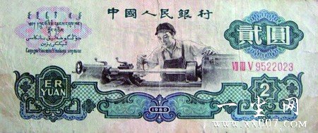 第三版人民币中车床工人图案的2元纸币,被炒到1000元。